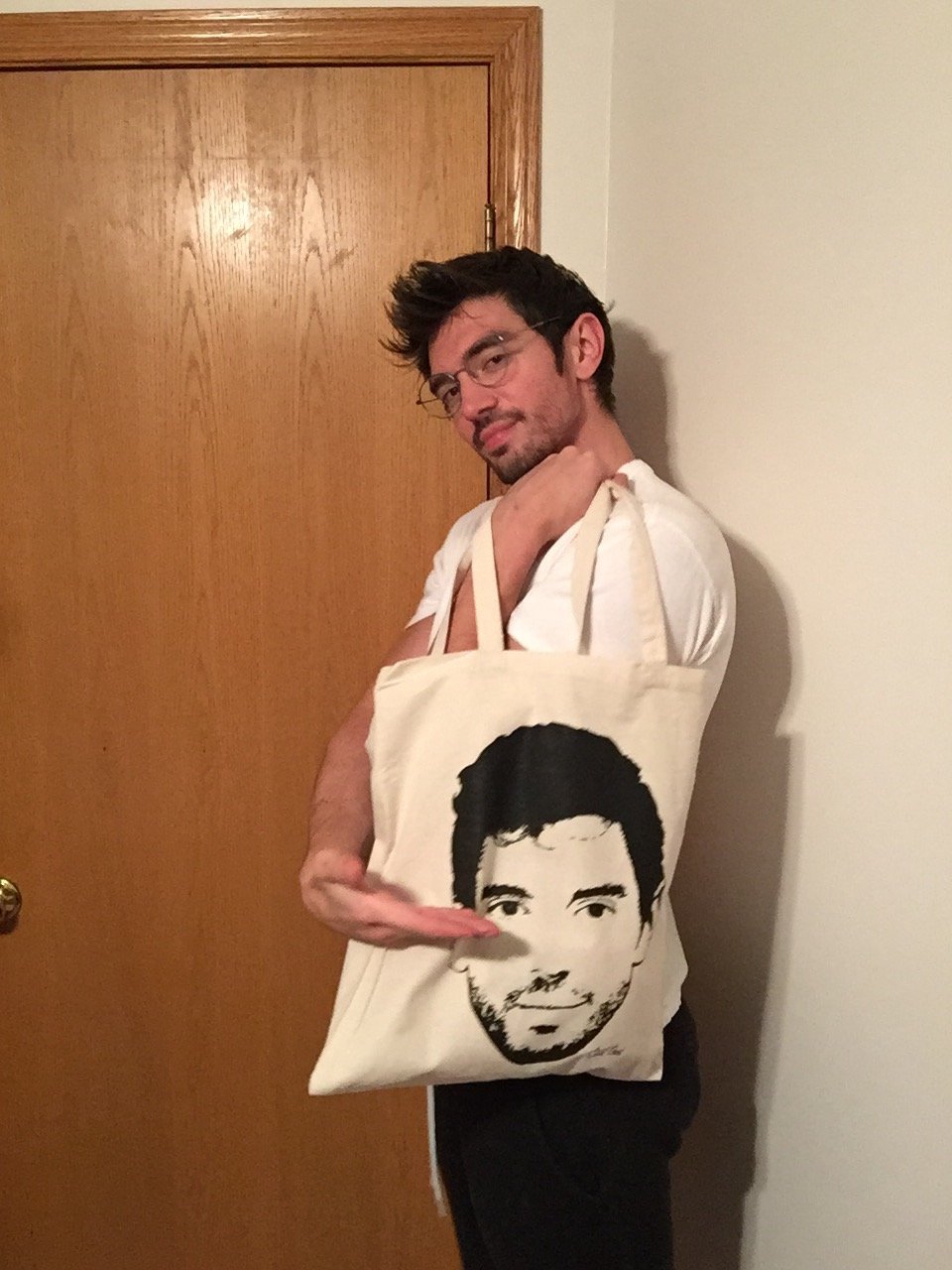 Check out my amazing modeling work with this handsome tote bag below ;p