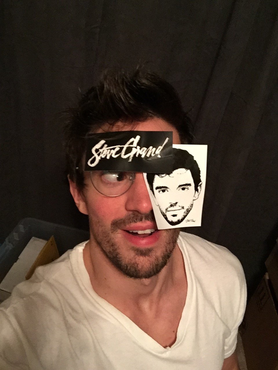 SOLD OUT OF "BIG FACE" stickers. Only "Steve Grand" logo stickers available.